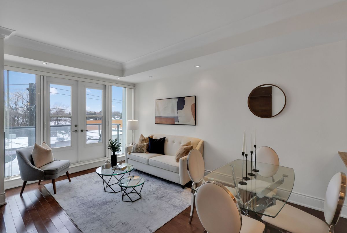 Welcome to this luxury 1+1 bedroom, 2-bath residence in a boutique building on Avenue Road, ideally located in the heart of Bedford Park. This spacious, sun-filled suite features 9 foot ceilings and boasts west-facing views, flooding the home with natural light throughout the day. Thoughtfully designed with top-of-the-line appliances, custom built-ins, and refined finishes, every detail speaks to quality and comfort.The primary bedroom features a walk-in closet and a sleek ensuite, while the generously sized den offers endless possibilities; perfect as a second bedroom, home office, or playroom. Step out onto your private balcony overlooking Avenue Road and enjoy the vibrant neighbourhood below.Includes parking and a locker for added convenience. Just steps to some of the city's best restaurants, shops, and amenities, and located within a top-rated school district, this is upscale urban living at its finest.